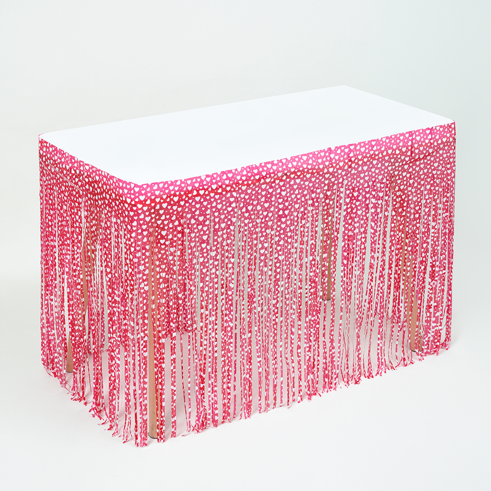 כמות של חצאית פרנזים לשולחן 75*275 לבבות אדום לבן