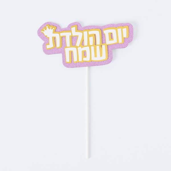 / טופר יום הולדת שמח עברית כתר רקע ורוד