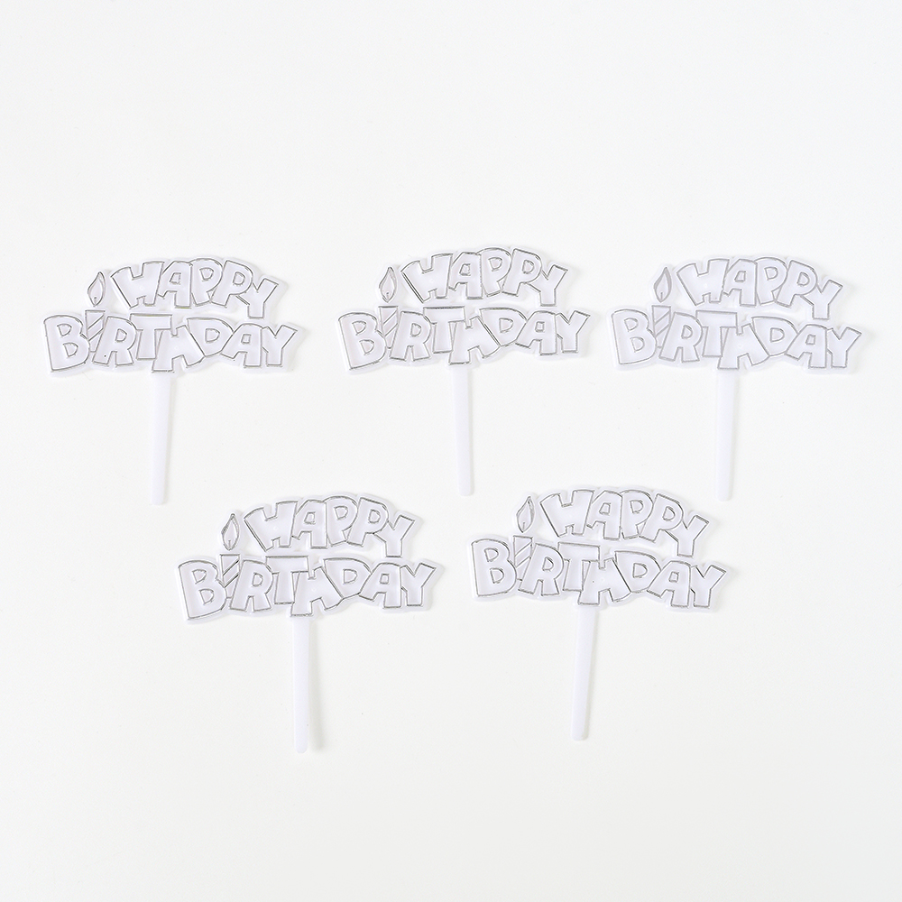 טופר פלסטיק לקאפקייקס יום הולדת שמח 5 יח' כסף