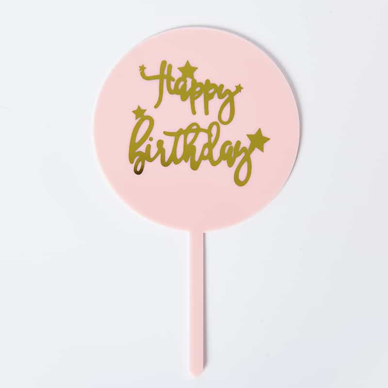 כמות של טופר פרספקס HAPPY BIRTHDAY לוח עגול ורוד