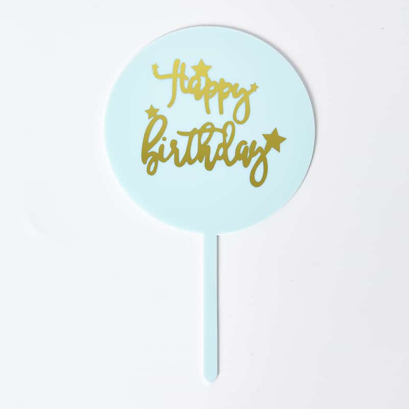טופר פרספקס יום הולדת שמח לוח עגול תכלת