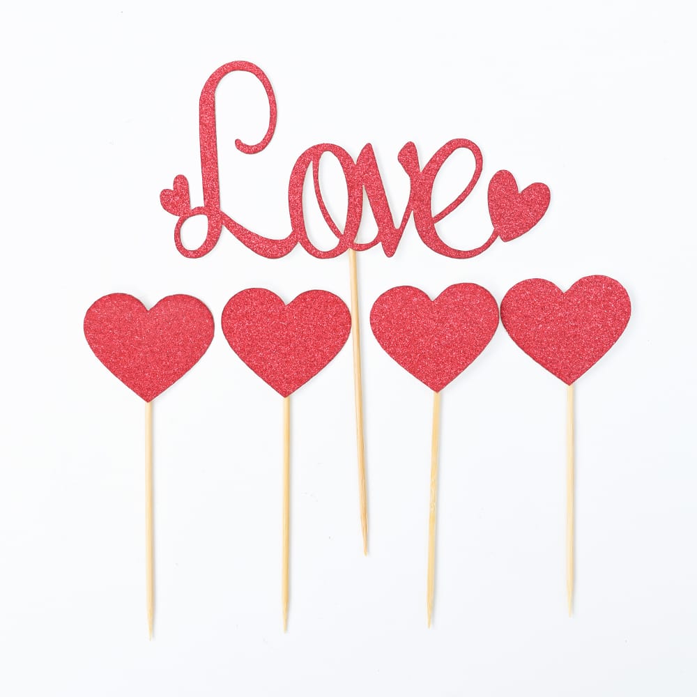 סט קיסמים 4 + LOVE לבבות אדום גליטר