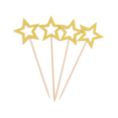 קיסמים כוכבים חלולים גליטר 10 יח' זהב *מבצע*