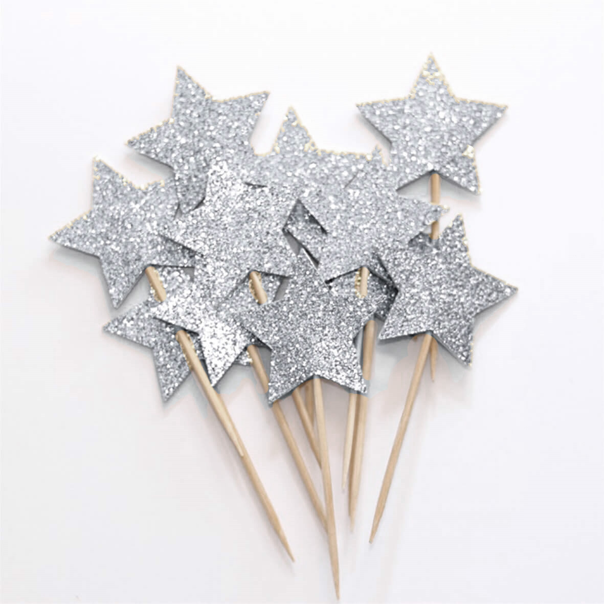 קיסמים כוכבים כסף גליטר 12יח'